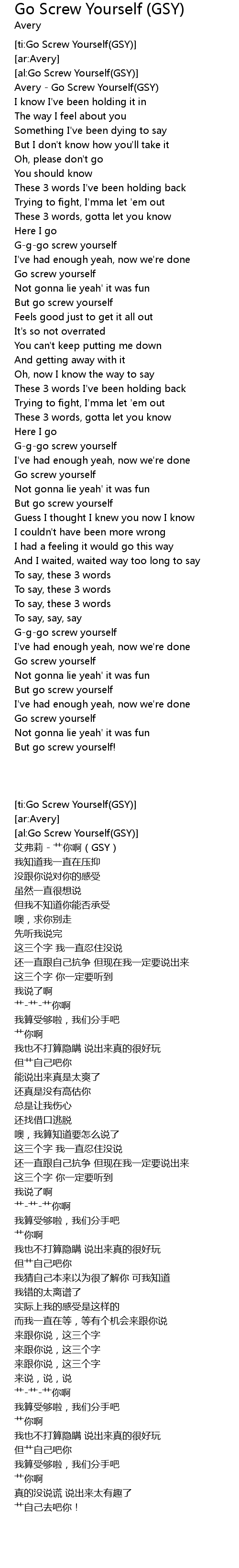 [ti:Go Screw Yourself(GSY)] |