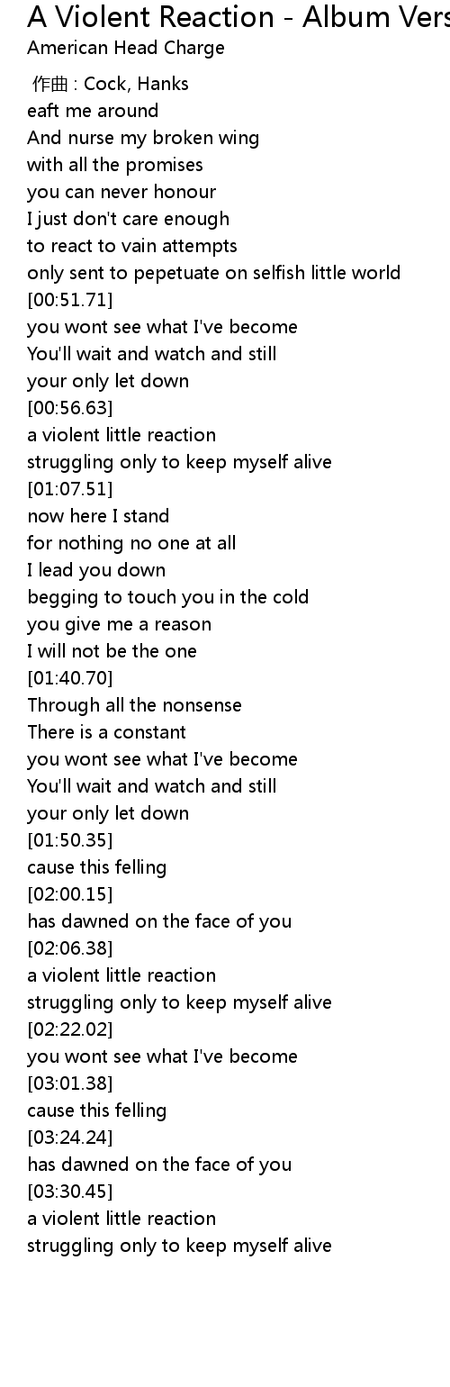 | Song | A Violent Reaction - Album Version (Explicit) |