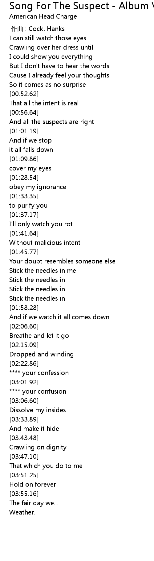 | [00:57.51] | And all the suspects are right |