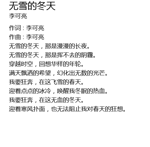 | wú xuě de dōng tiān, nà shi màn màn de cháng yè. | |