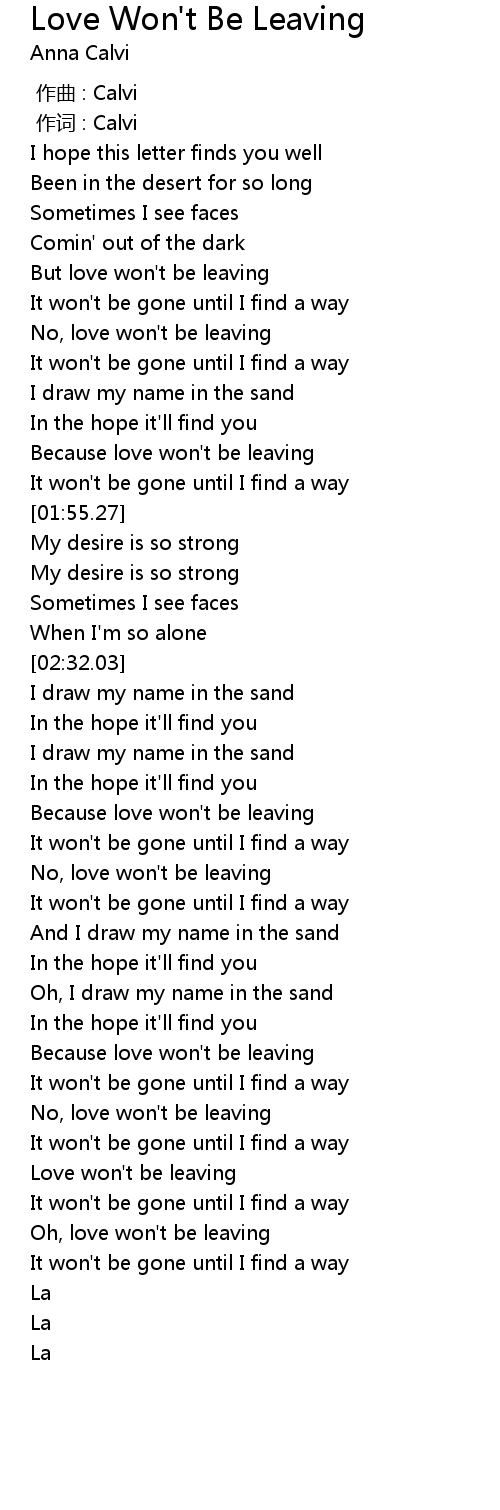 | [01:42.64] | Because love won' t be leaving |