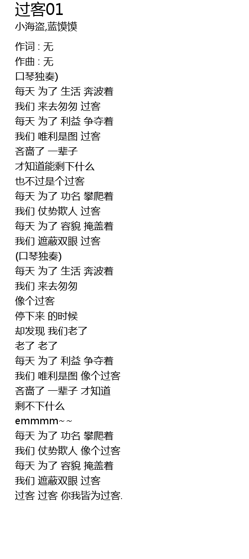 | guò kè guò kè nǐ wǒ jiē wèi guò kè. |