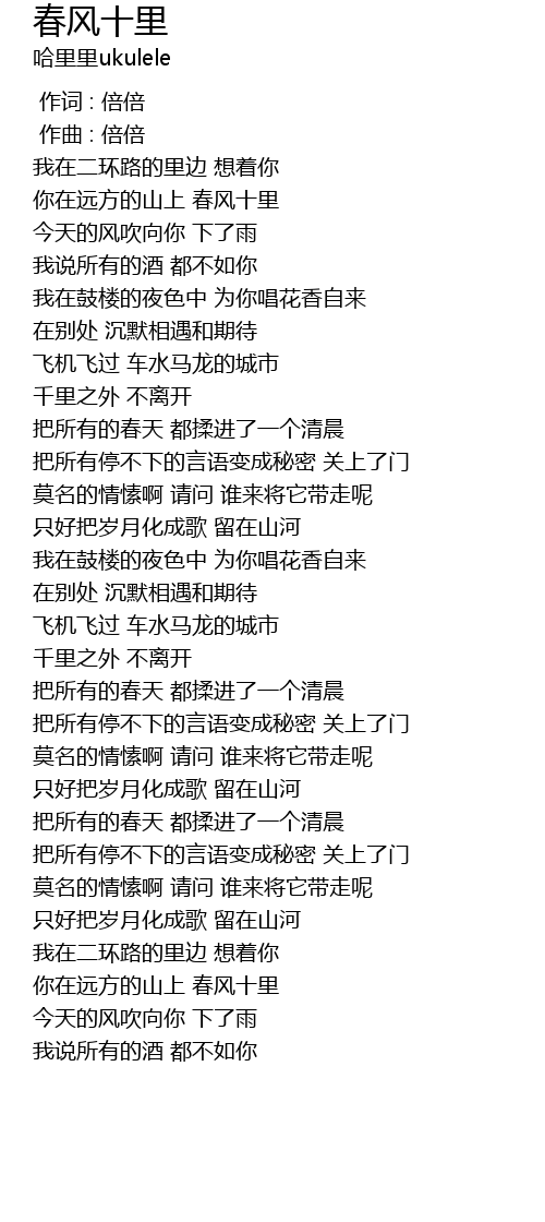 | [02:20.952] | qiān lǐ zhī wài bù lí kāi |