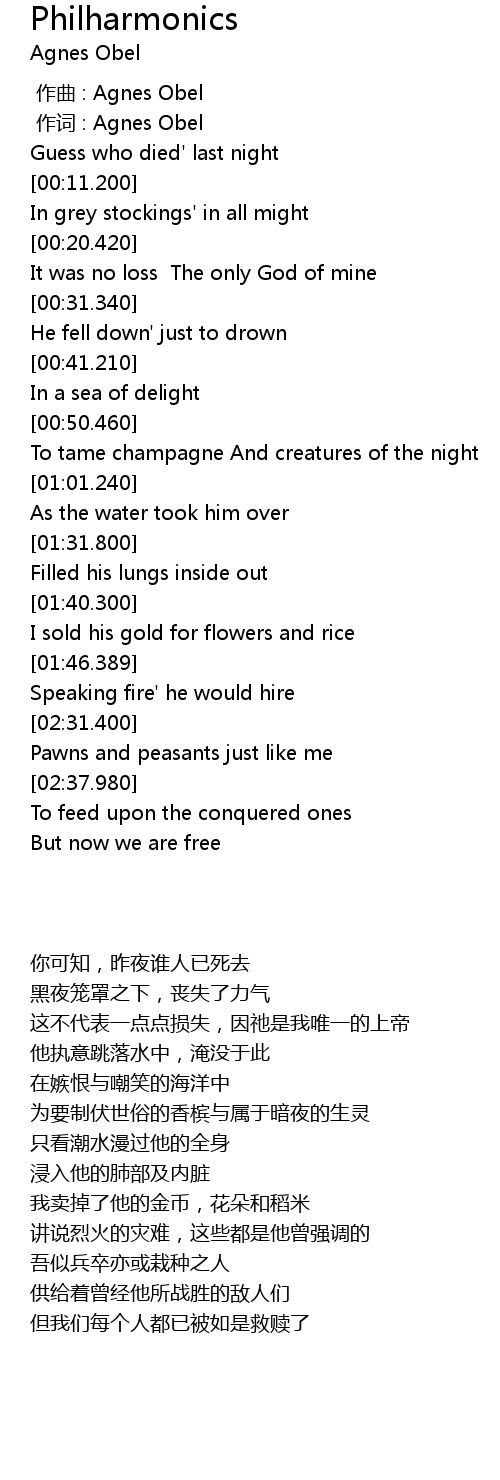 | [00:00.00] | 作曲 : Agnes Obel |