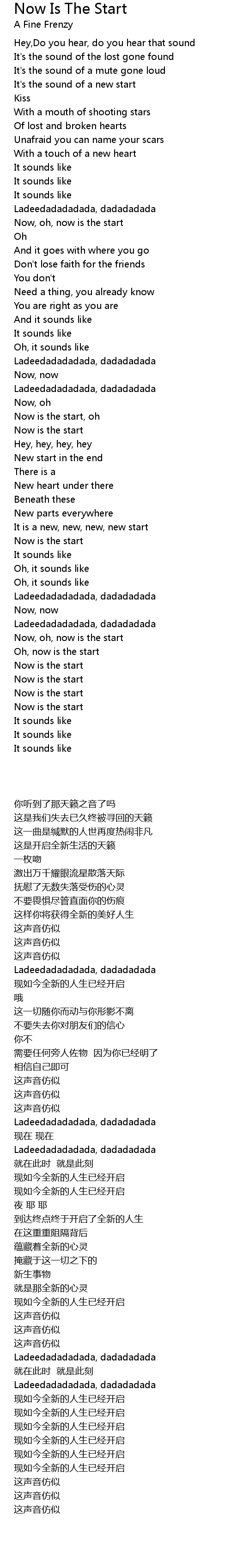 Now is the start, oh |