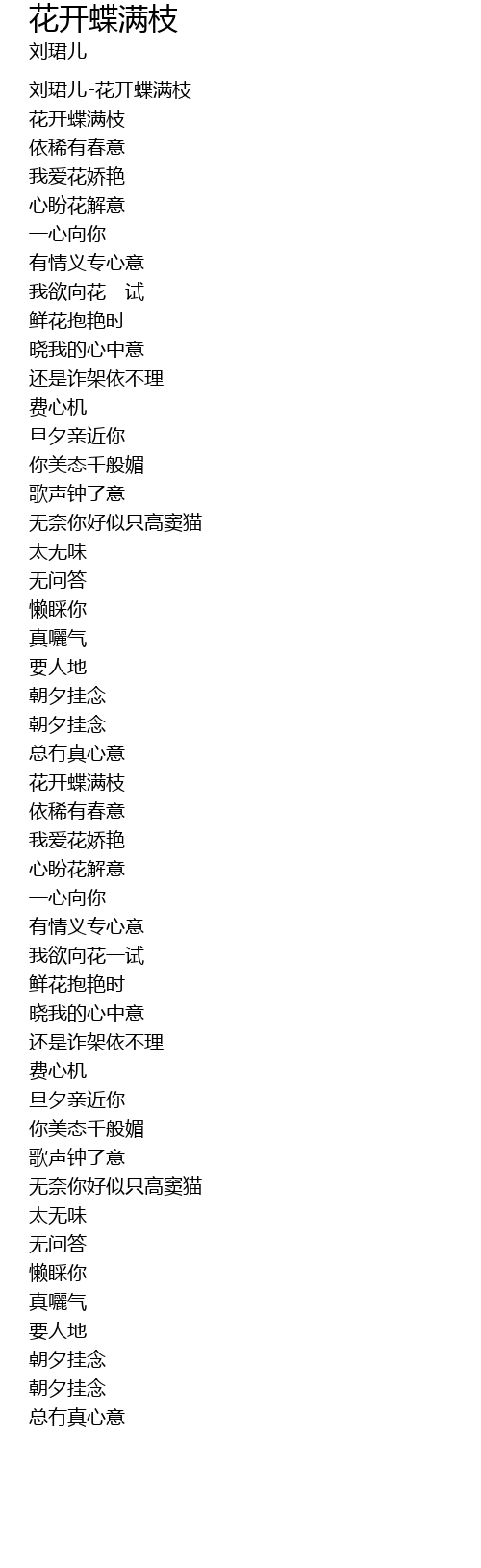 | [00:01.51] | 刘珺儿-花开蝶满枝 |