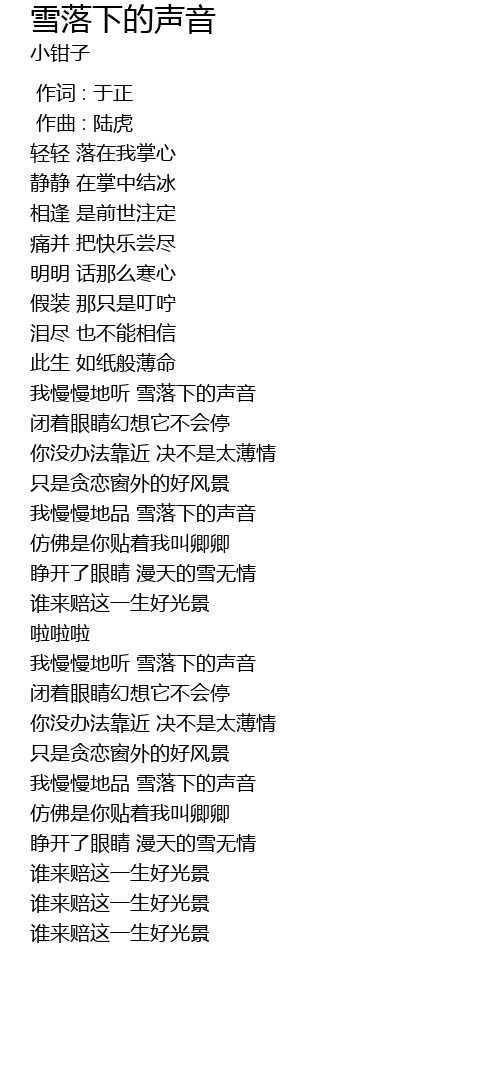| [01:19.418] | 我慢慢地听 雪落下的声音 |