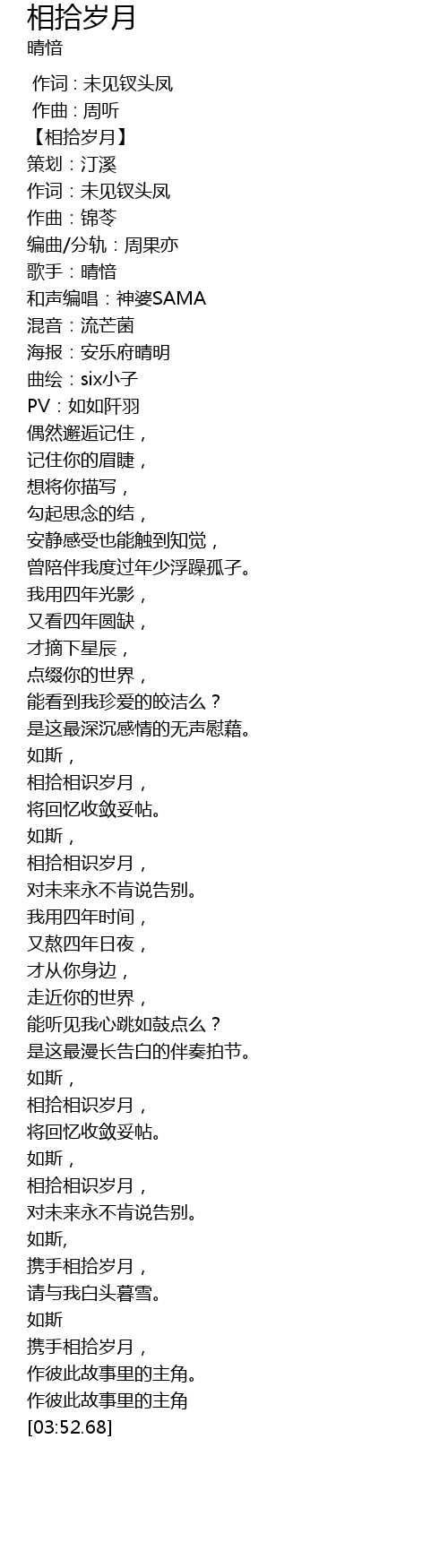 | [03:16.68] | xié shǒu xiàng shí suì yuè, |