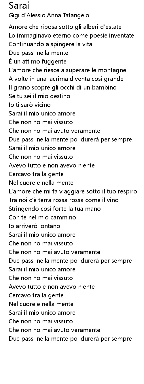 | [02:17.43] | Sarai il mio unico amore |
