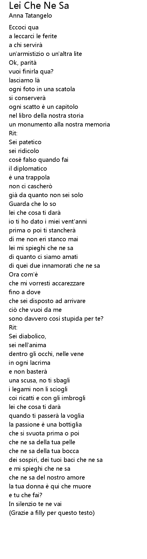 | Song | Lei Che Ne Sa |