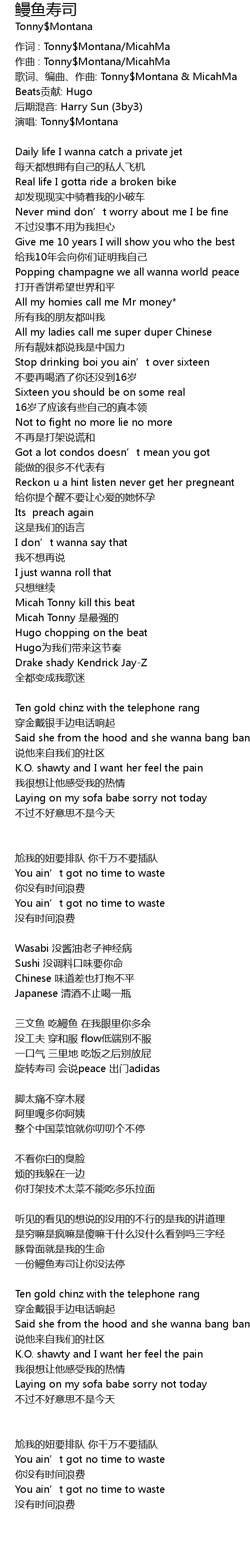 | gē cí biān qǔ zuò qǔ: Tonny Montana MicahMa | |