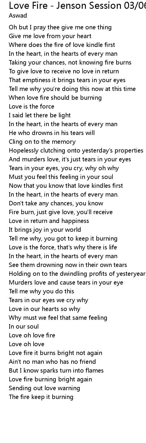 Love Fire - Jenson Session 03/06/1982 Programme Number: 99YJ7009 Lyrics