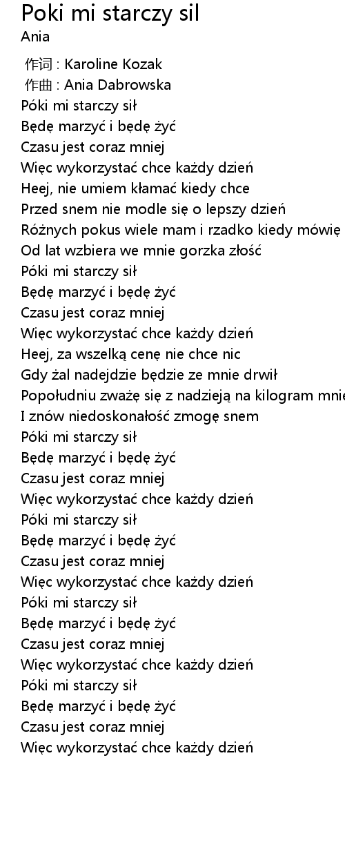 | [00:47.624] | Przed snem nie modle si o lepszy dzie |