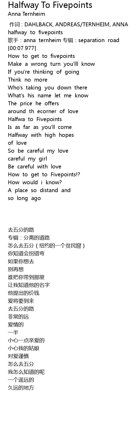 | [00:04.322] | ge shou: anna ternheim zhuan ji: separation road |