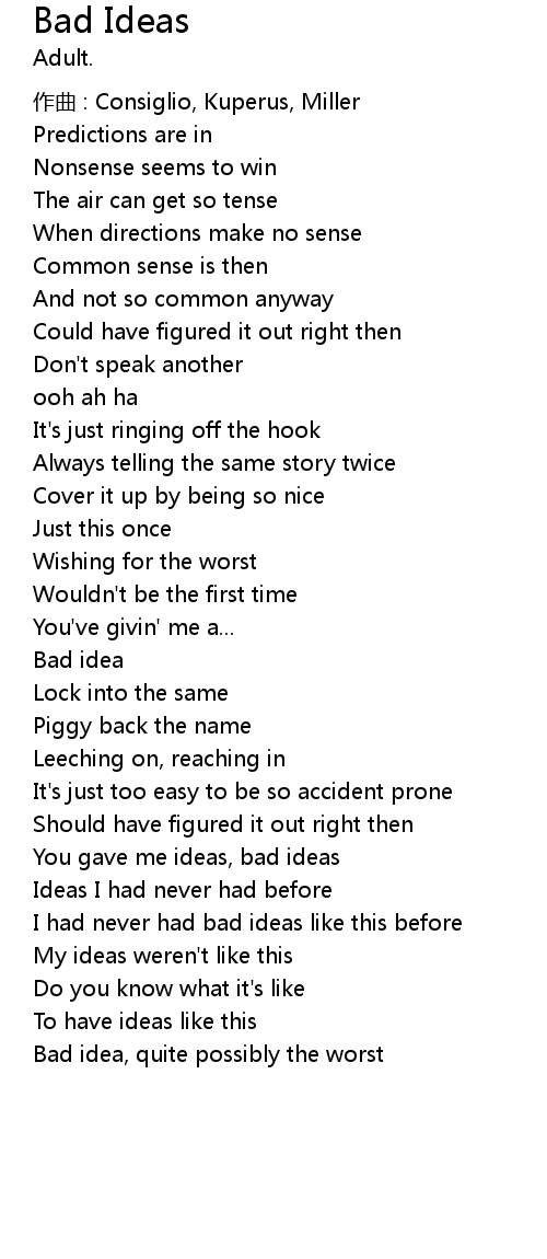 | Song | Bad Ideas |