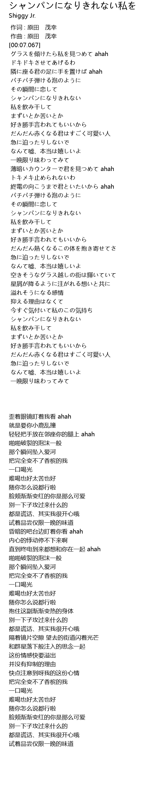 | [00:16.998] | グラスを傾けたら私を見つめて ahah |