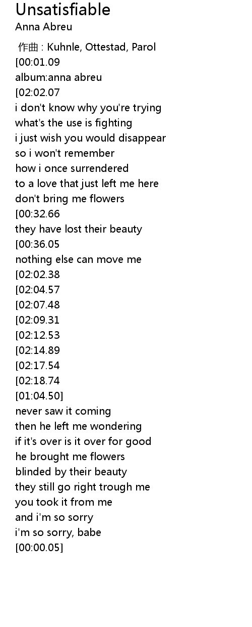 | [02:45.23][00:01.09] | anna abreu-unsatisfiable |