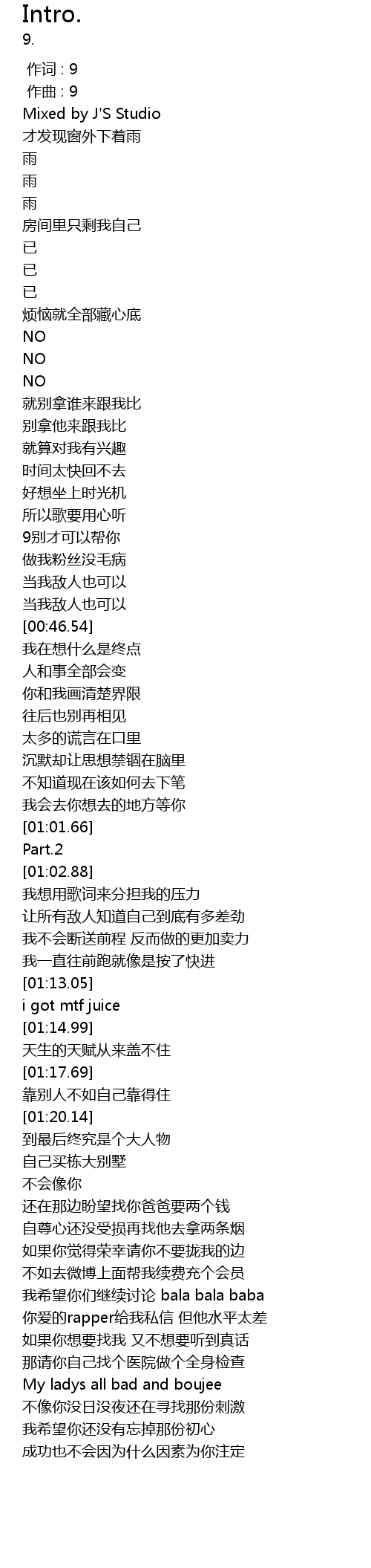 | [01:38.03] | 你爱的rapper给我私信 但他水平太差 |