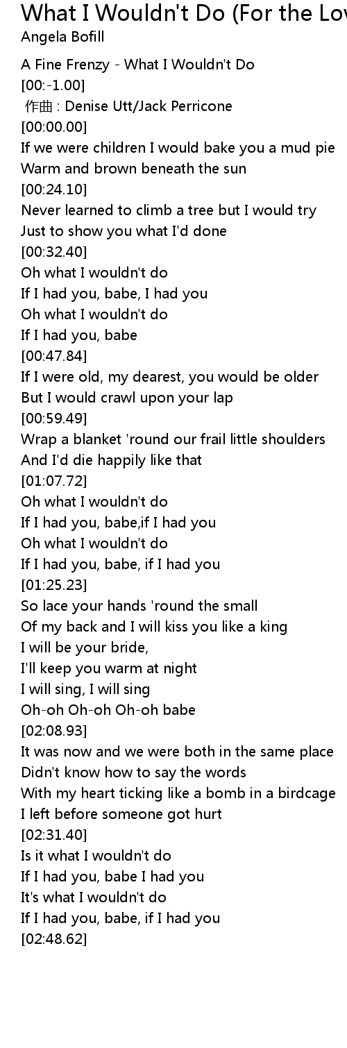 | [00:-2.00] | A Fine Frenzy What I Wouldn' t Do |
