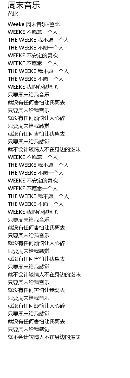 | [00:03.831] | Weeke 周末音乐-芭比 |