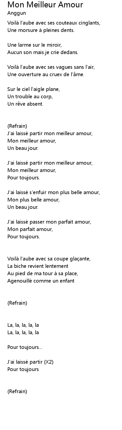 | J' ai laissé s' enfuir mon plus belle amour, | |