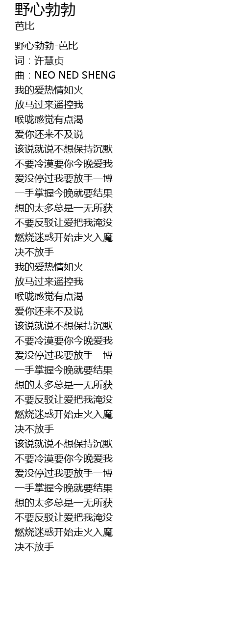 | [00:00.938] | yě xīn bó bó bā bǐ |