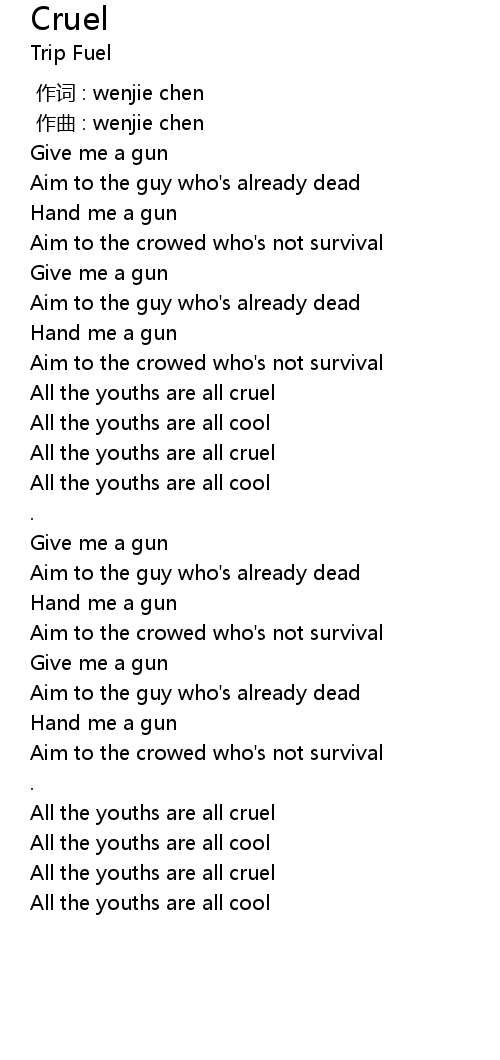 | [01:31.17] | All the youths are all cruel |