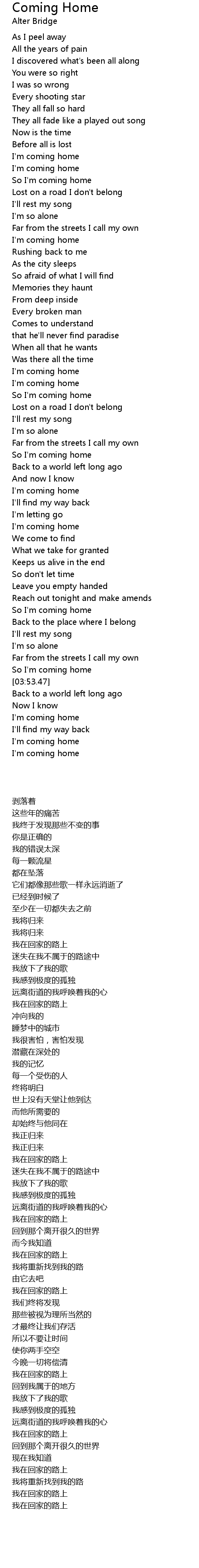 So I'm coming home |