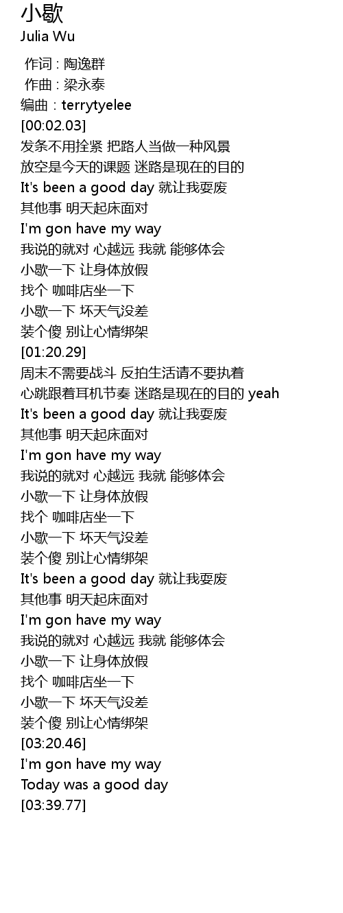| [01:59.01] | It's been a good day 就让我耍废 |
