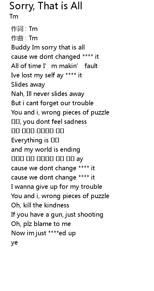 | Song | Sorry, That is All |