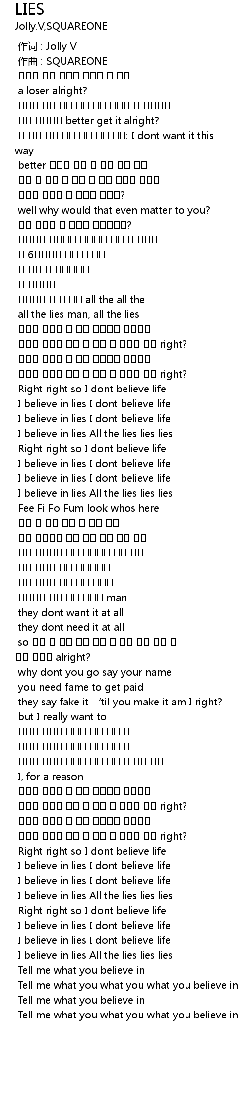 | [02:55.396] | I believe in lies All the lies lies lies |
