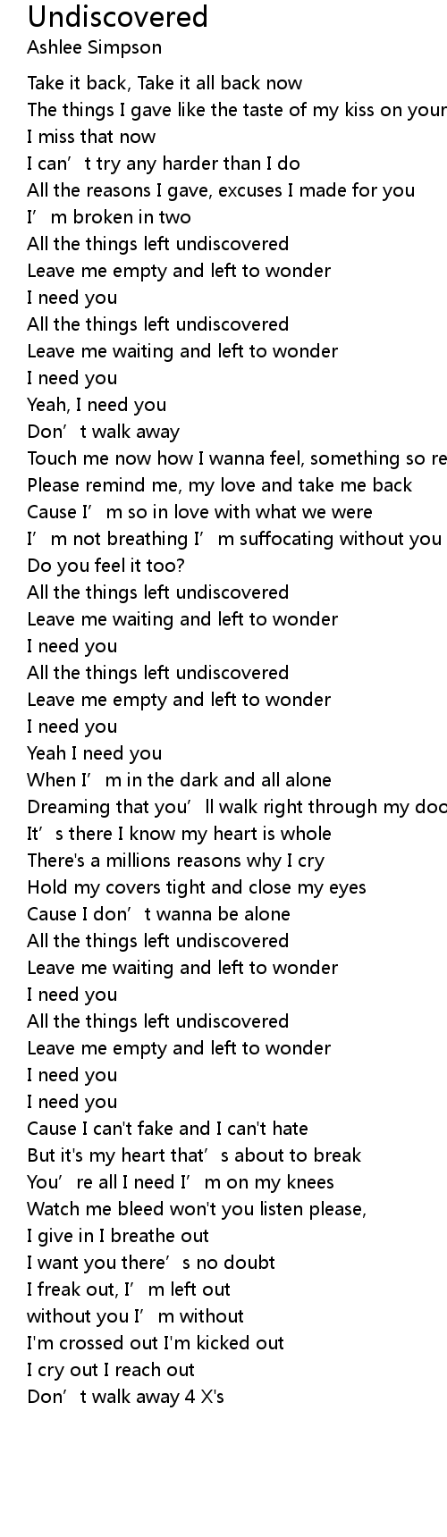 | [03:01.92] | All the things left undiscovered |