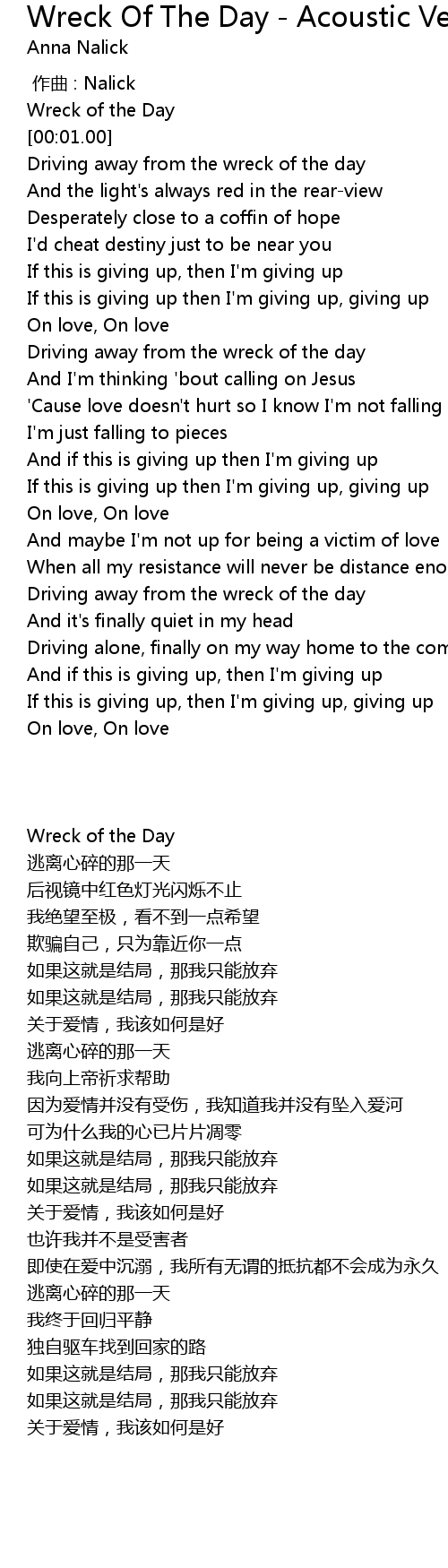 | [00:00.00] | Wreck of the Day |