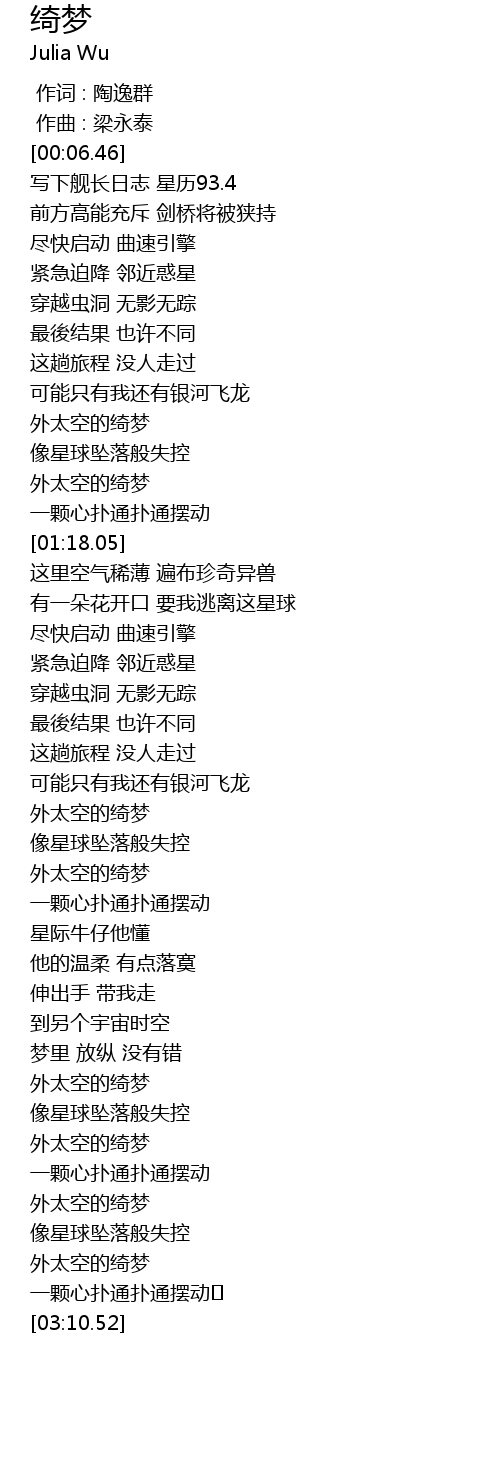 | [03:01.73] | wài tài kōng de qǐ mèng |