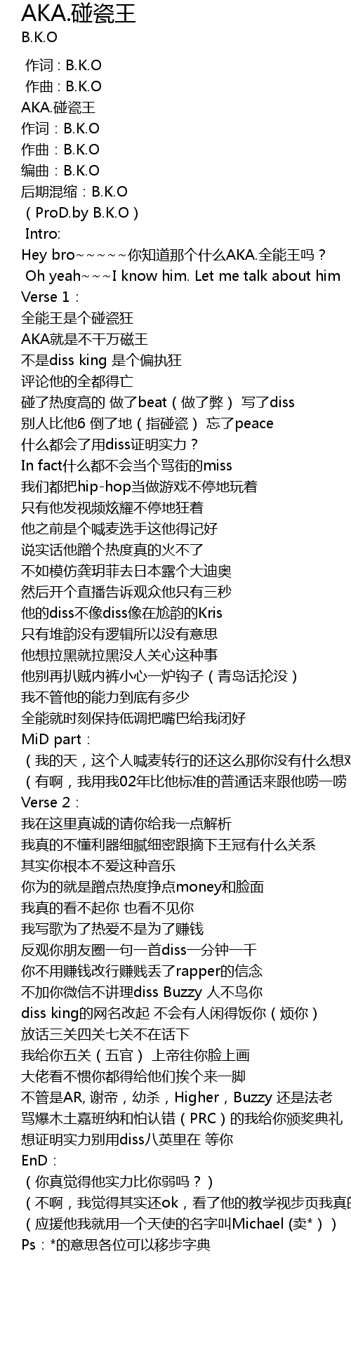 | [01:38.22] | diss king的网名改起 不会有人闲得饭你(烦你) |