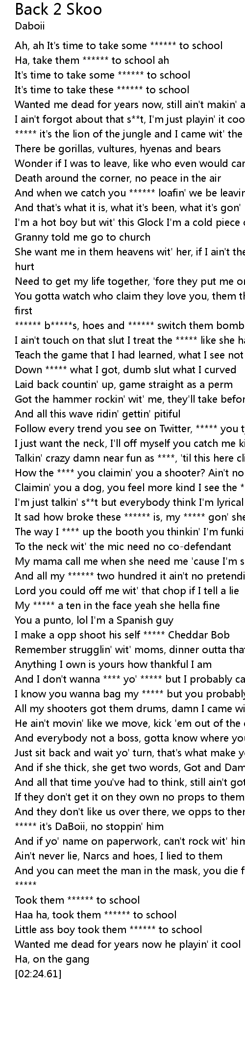 Ah, ah It's time to take some ****** to school |
