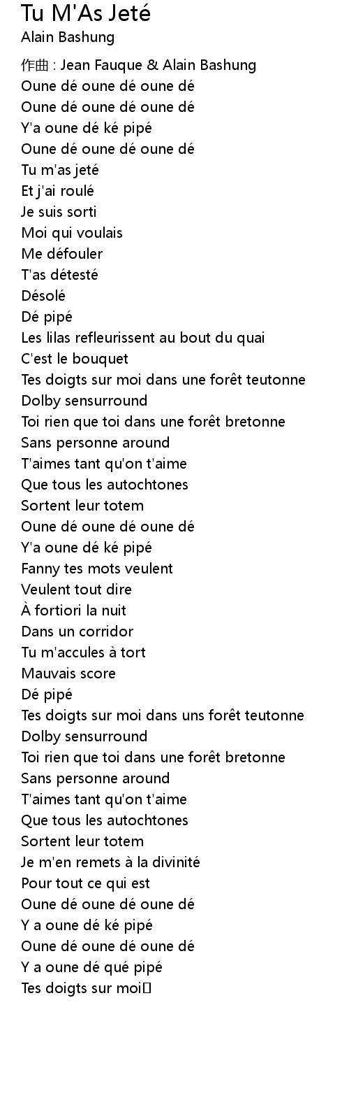 | 作曲 : Jean Fauque & Alain Bashung | |