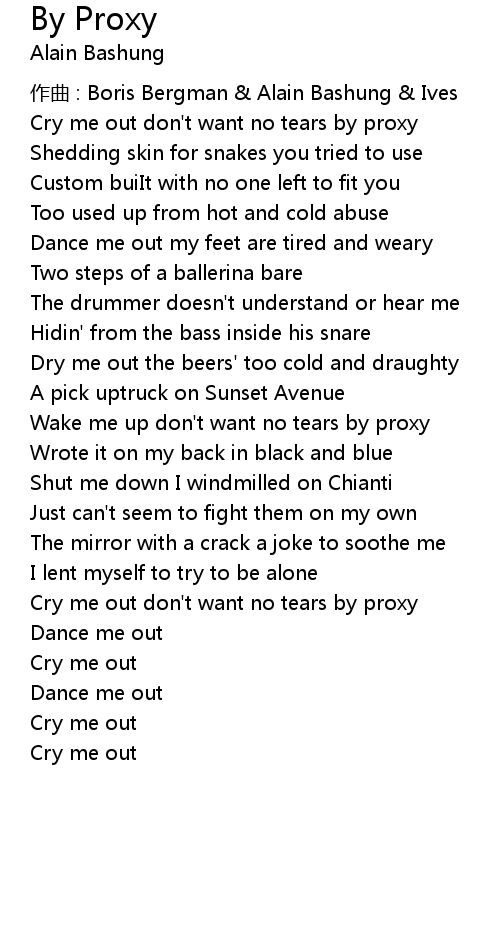 | Cry me out don' t want no tears by proxy | |