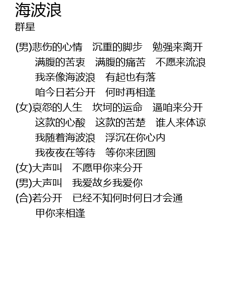 | (男)悲伤的心情 沉重的脚步 勉强来离开 | |