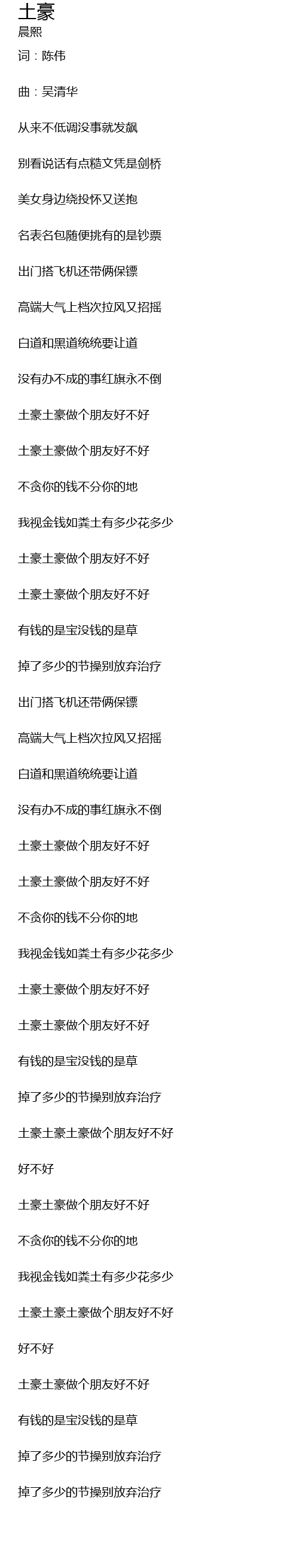 | tǔ háo tǔ háo tǔ háo zuò gè péng yǒu hǎo bù hǎo | |