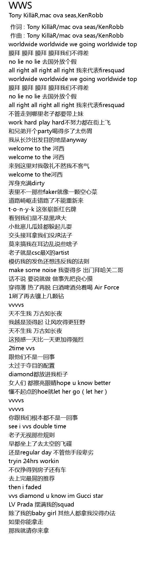 | [00:01.000] | zuo qu : Tony Killa R mac ova seas KenRobb |