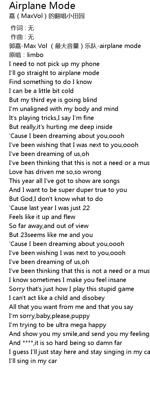 | [00:00.33] | guō jiā Max Vol zuì dà yīn liàng yuè duì airplane mode |