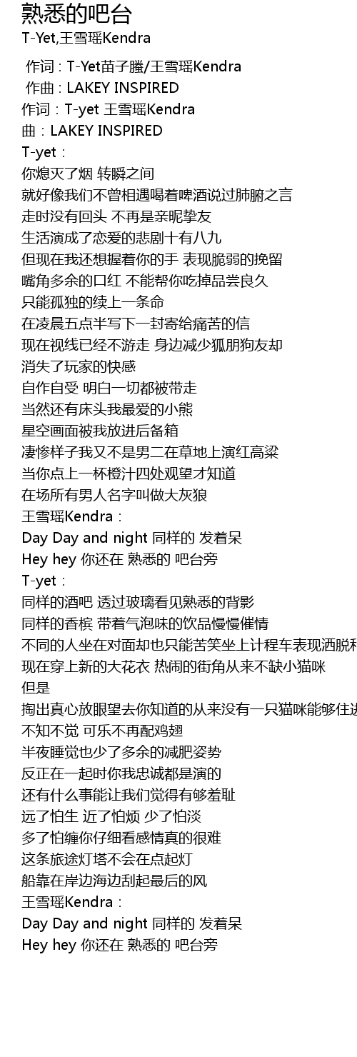 | [00:04.953] | 作词:T-yet 王雪瑶Kendra |