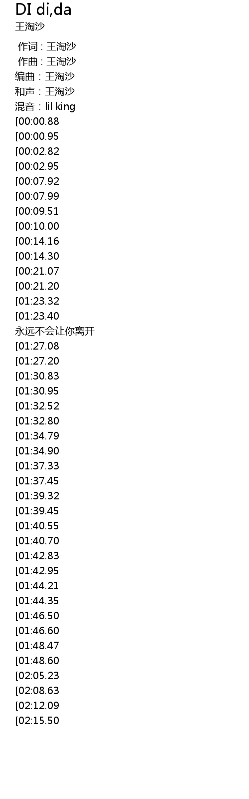 | [02:57.350][01:48.60][00:52.05] | dī dá dī dī dá dī |