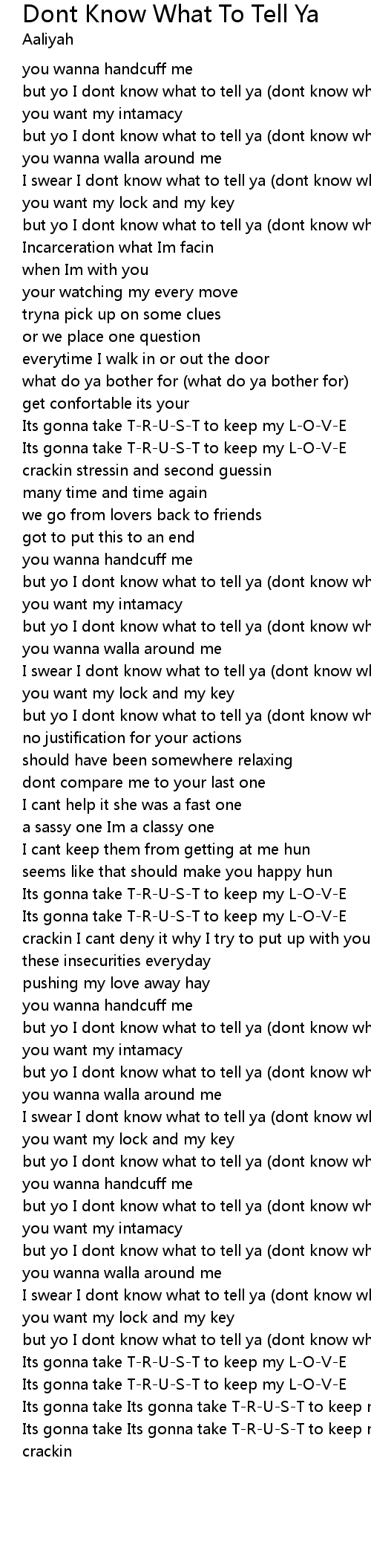 but yo I dont know what to tell ya (dont know what to tell ya) |