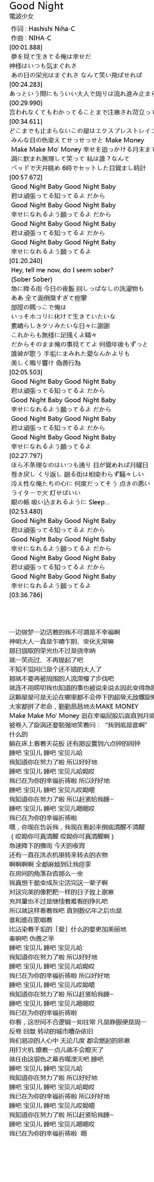 | [02:11.308] | Good Night Baby Good Night Baby |