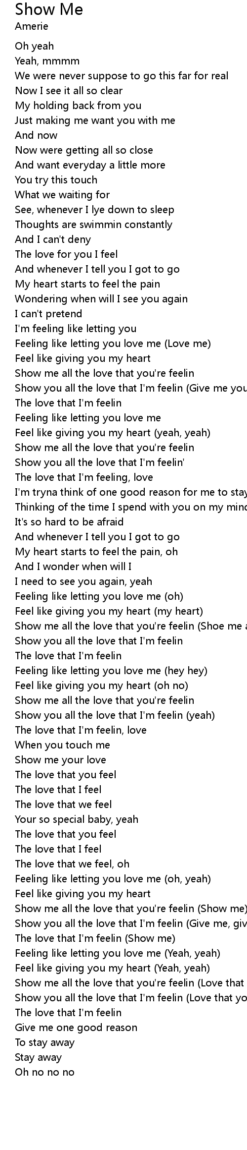 Show me all the love that you're feelin (Love that I'm feeling) |