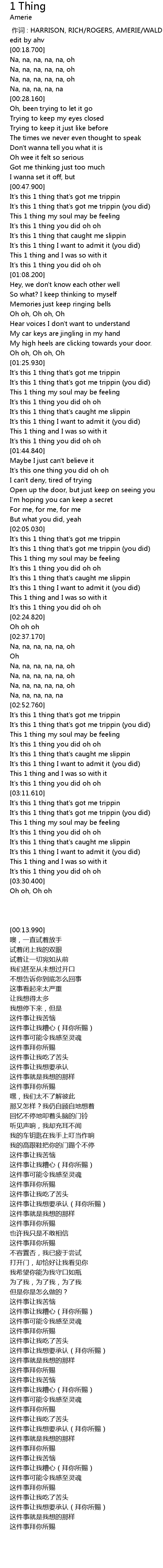 | [00:00.00] | 作词 : HARRISON, RICH/ROGERS, AMERIE/WALDEN, STANLEY |