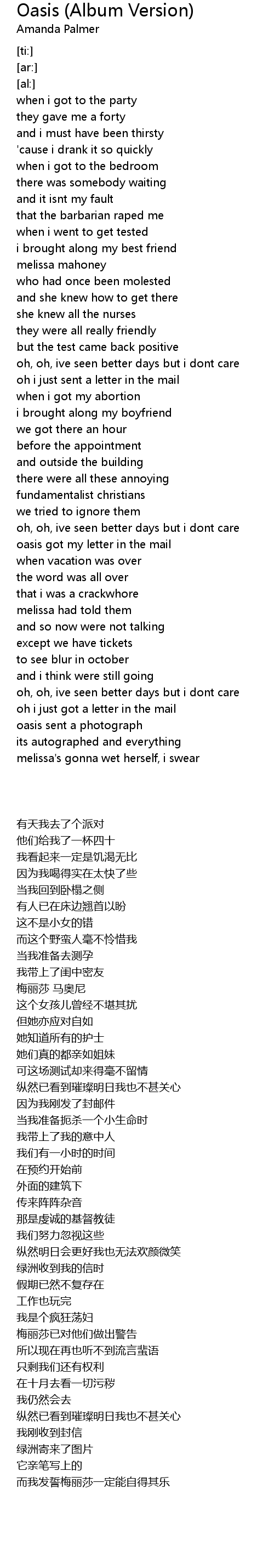 oasis got my letter in the mail |