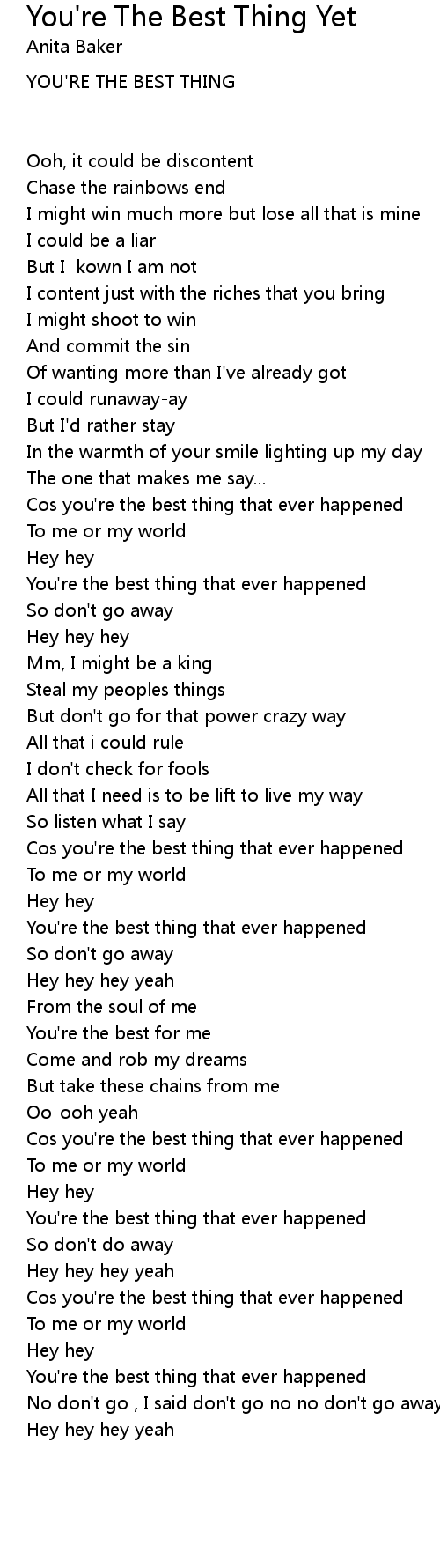 You're the best thing that ever happened |
